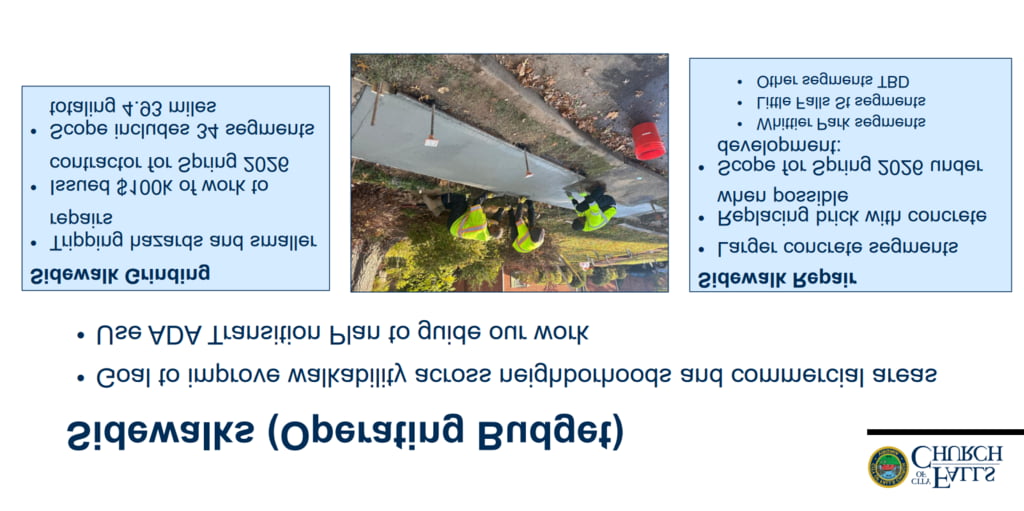 - This year: with that one time money going away, the City Manager’s proposed budget included declines in paving and sidewalk maintenance budgets. There was concern from all of us on City Council – this seems like a step backwards especially given the community’s priorities for walkability and street safety. We asked for better funding options, especially seeing photos of rusting mast arms that need quicker replacement and road conditions after this winter.