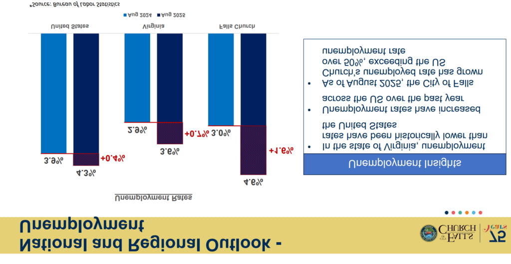 The full presentation is available here, but here are few notable highlights. With upheaval at the federal level that impacts our local economy acutely, accurate revenue projections are harder than ever. The theme is: “uncertainty is the only certainty”. What we do know is that unemployment in Falls Church has grown 50% (now higher than Virginia’s average), residential real estate values are still appreciating because it continues to be a desirable place to live with limited housing supply, and we expect flat commercial revenue growth due to consumer sentiment. This is a slightly better position than our neighbors who are all facing flat or declining revenues.