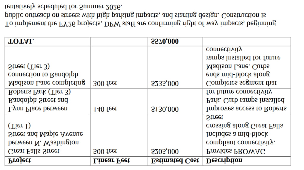 - 3 sidewalk projects are planned for this coming year based on the prioritization criteria above.