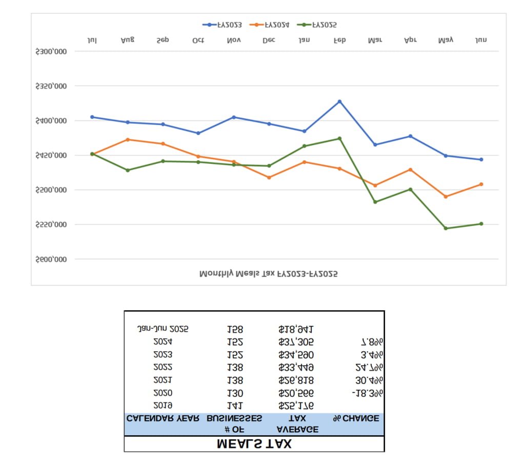 - Meals tax is up 2.9% over last year. Last December to February were worrisome, but meals tax rebounded in March to June 2025. Dining out is often one of the first discretionary spending items to be pinched during tough times, so we’ll continue to monitor closely.
