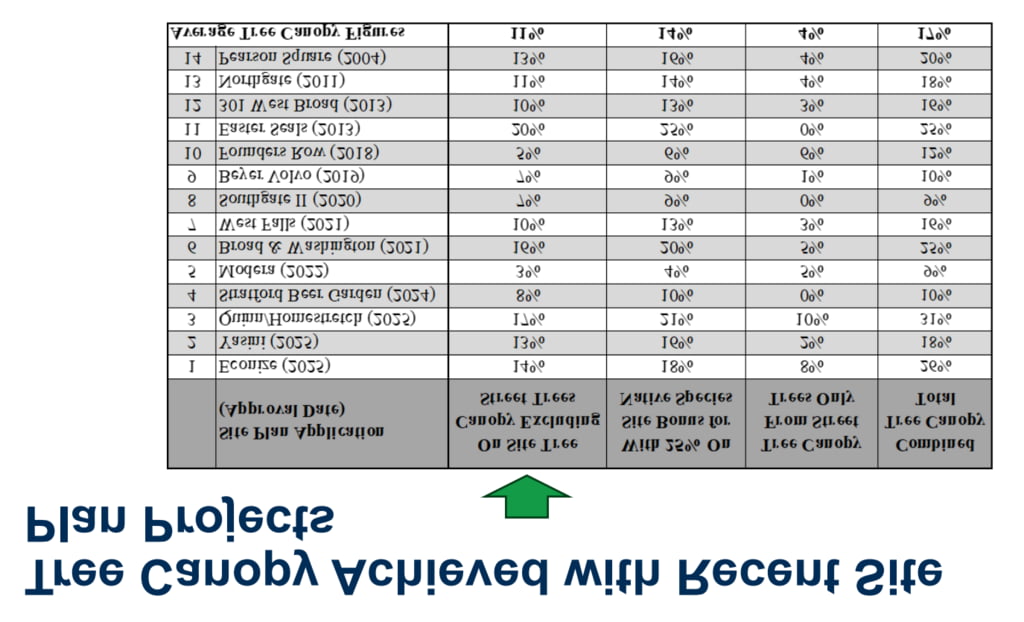 - You can see that we’ve had a mix of tree canopy %s achieved across projects without the 10% – so hopefully the new 10% will be a floor for future negotiations where we can only go up.